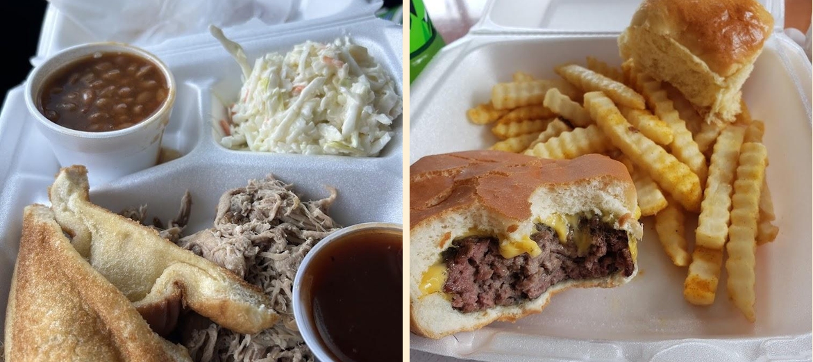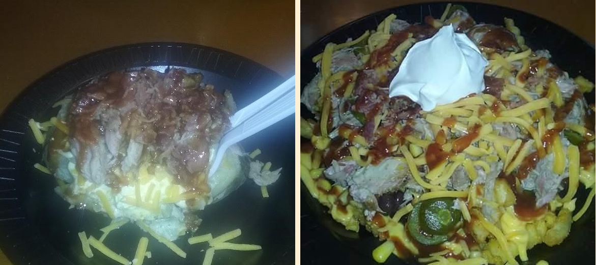Pulled pork sandwiches rank high on the list of favorites. Many recommend the loaded baked potatoes, famously large and packed with flavor. The BBQ sauce is often mentioned for its unique and delightful taste that perfectly complements the meats. Customers enjoy the friendly service, which adds to the overall dining experience.