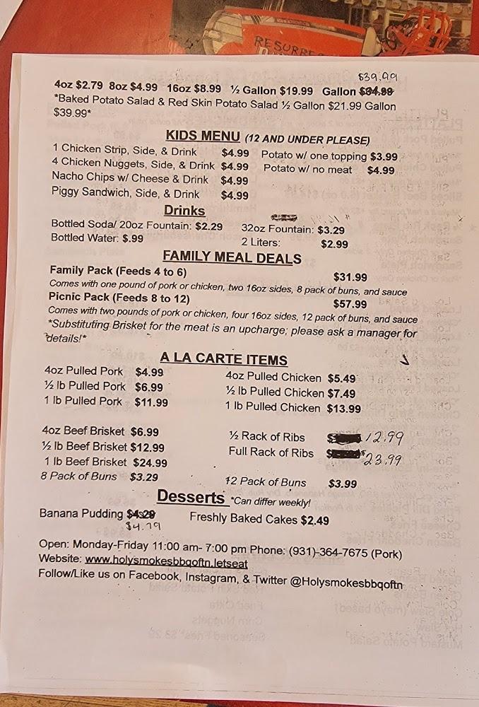No meal is complete without trying the sides. Options include classic potato salads, baked beans, and green beans. The kids' menu offers choices like chicken nuggets and grilled cheese, proving it’s family-friendly. Desserts, especially banana pudding, showcase the sweet side of southern cooking. Holy Smokes BBQ truly caters to all tastes.